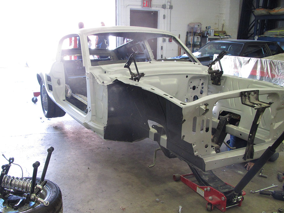 Brought to us by a client who purchased it as a project in process from another shop, this Eleanor-esque Fastback was in dire need of some attention. When we got it we stripped it back down to bare metal, repaired all the issues and refinished it in the proper Pepper Gray Metallic. Built to the most discerning specs, the bottom of the car is finished to the same quality as the top, and protected by 3M protectant. While not a true Eleanor clone, this car is the perfect mix of Eleanor parts and our own style. 650HP is generated by the Shaffiroff 427, transmitted by a Tremec TKO 600 5 speed, and applied to the ground through a 31 spline Moser 9”. A custom Vintage Air unit will ensure that her owner uses her as much as possible.